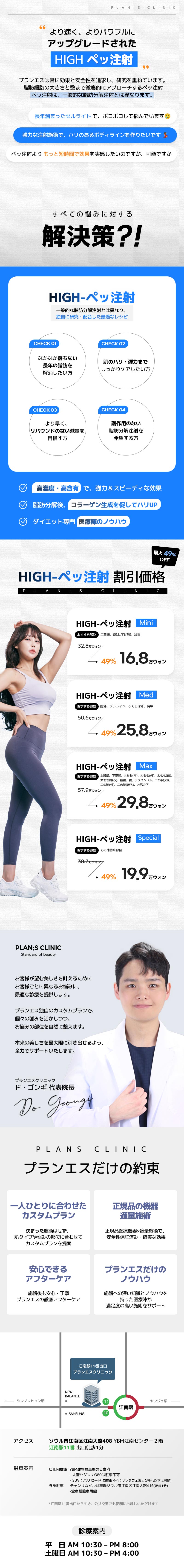 他院で脂肪分解注射を受けた時は、正直、効果もよく分からないし、痛みもひどくてもう二度とはしないと考えましたが、プランエスペッ注射は、痛みもほぼなく我慢できるぐらいでした。もちろん効果もあって満足しています。また受けに行きたいお思います!