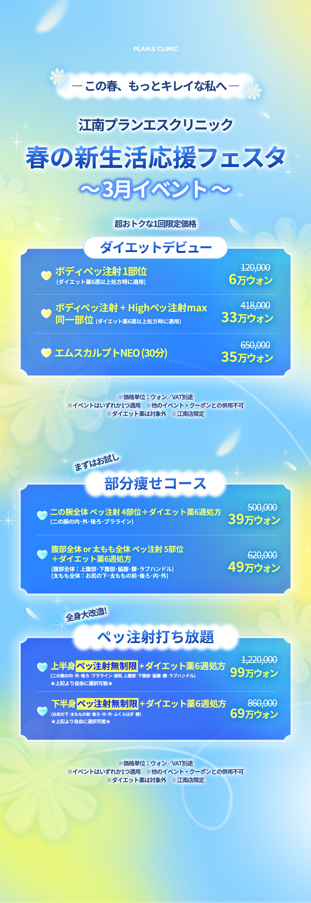 リフティング、ホワイトニング、タイトニングの同時効果 6回決済時に1回の単価