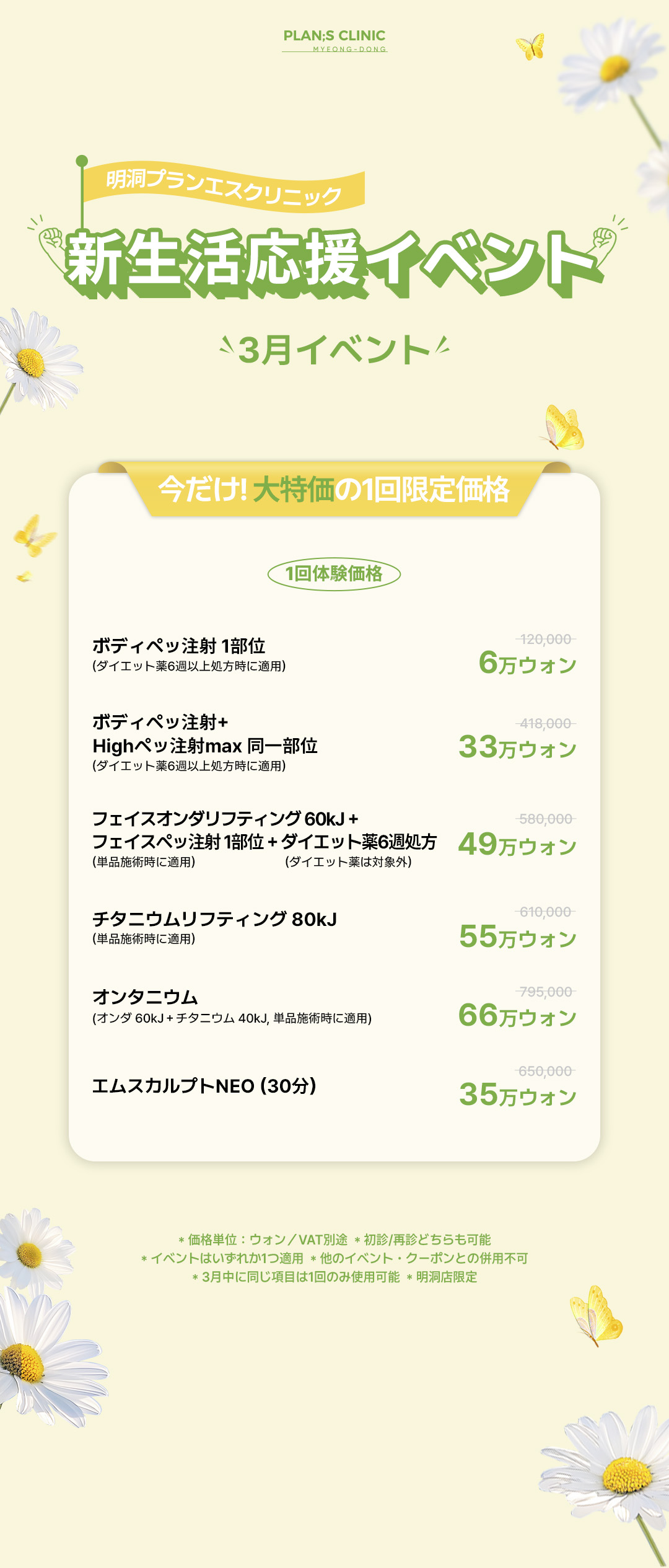リフティング、ホワイトニング、タイトニングの同時効果 6回決済時に1回の単価
