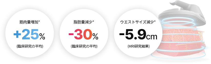 高強度電磁場が筋肉層を刺激し、30分で腹筋2万回以上に相当する強力な筋収縮を実現