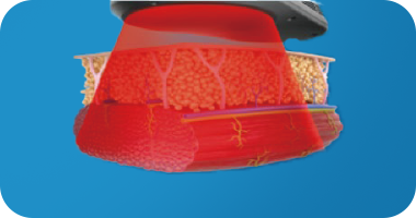 高周波エネルギーで組織を素早く加熱し、皮下脂肪層の温度を40〜43℃まで上昇