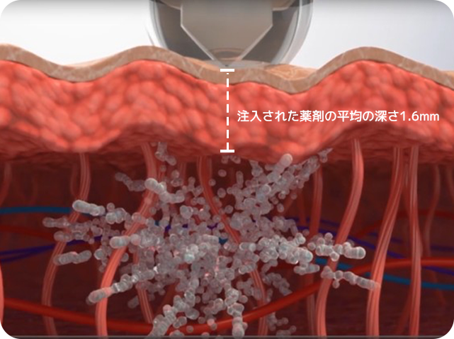 スキンブースターなどの少量の薬剤も真皮層に均一に注入可能です。